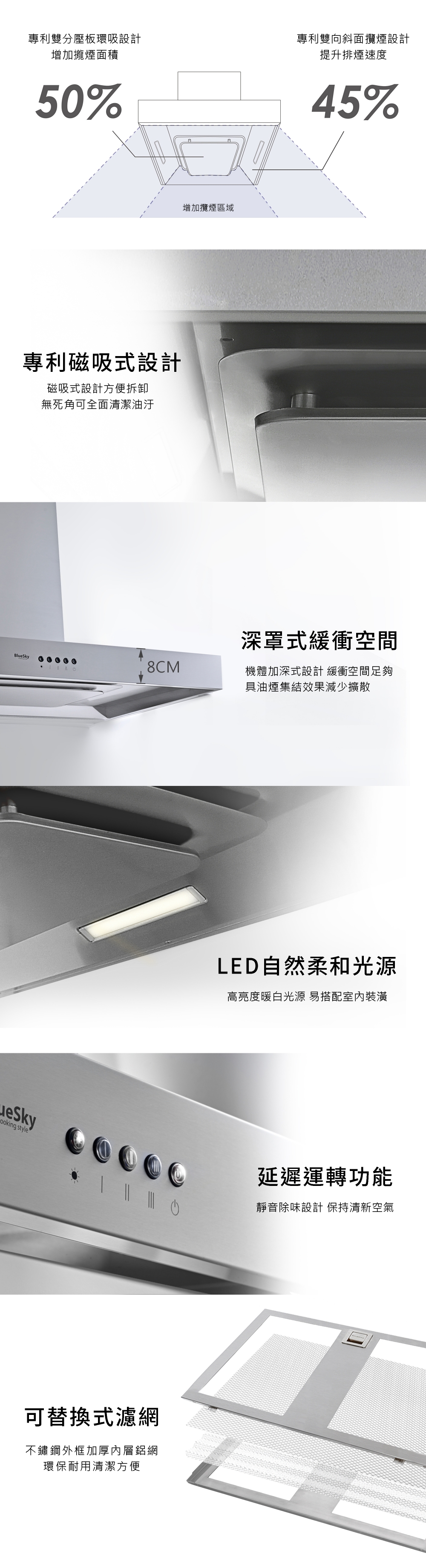 · 深罩式緩衝結構 油煙不飄散