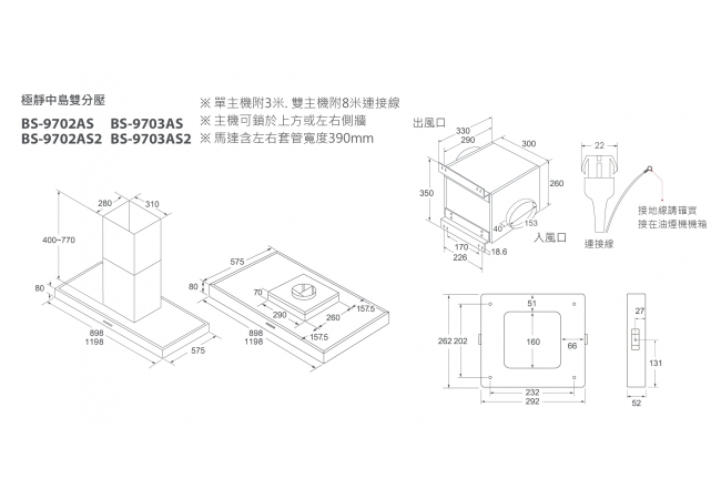 極靜中島雙層導流排油煙機120CM(單主機)