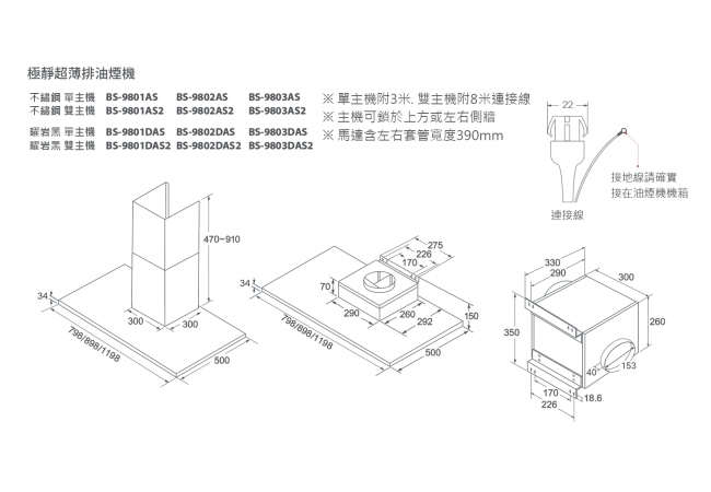 極靜超薄排油煙機 90CM (雙主機) ...