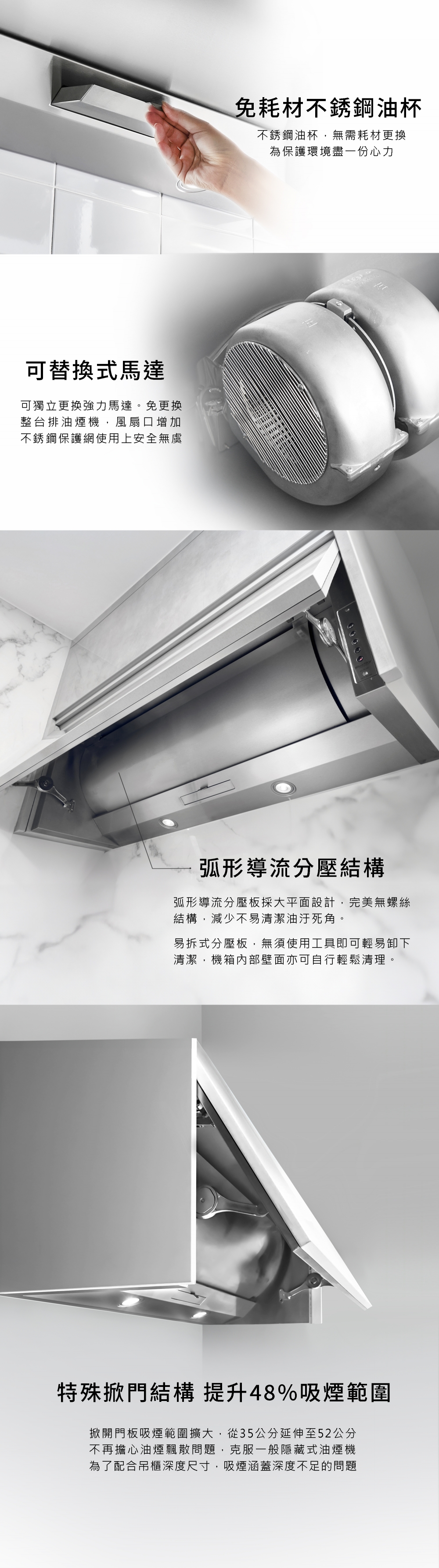 • 門板設計高度不能超過72cm,避免掀門時門板壓到後面風管