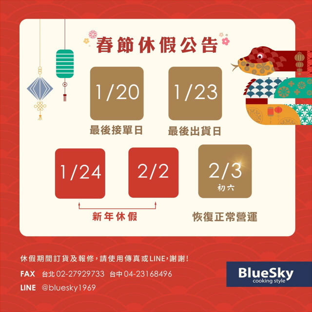 BlueSky春節休假公告