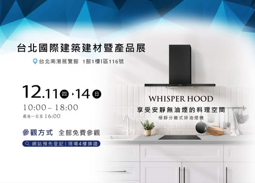 多款 #超靜音排油煙機 將於現場開放體驗,細緻質感、亮眼設計與多項貼心功能一次看得見!多樣化的設計將帶給您更多靈感與選擇!